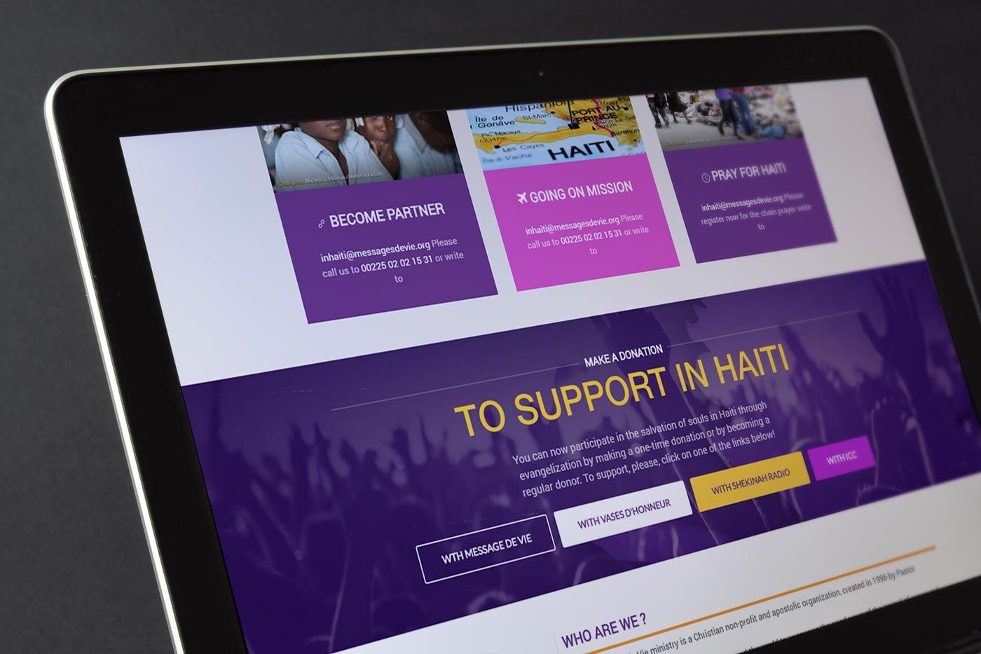 Engagé par l'organisation Chretienne "Message de vie" pour la réalisation du site de lancement de leur campagne dénommée IN Haïti.