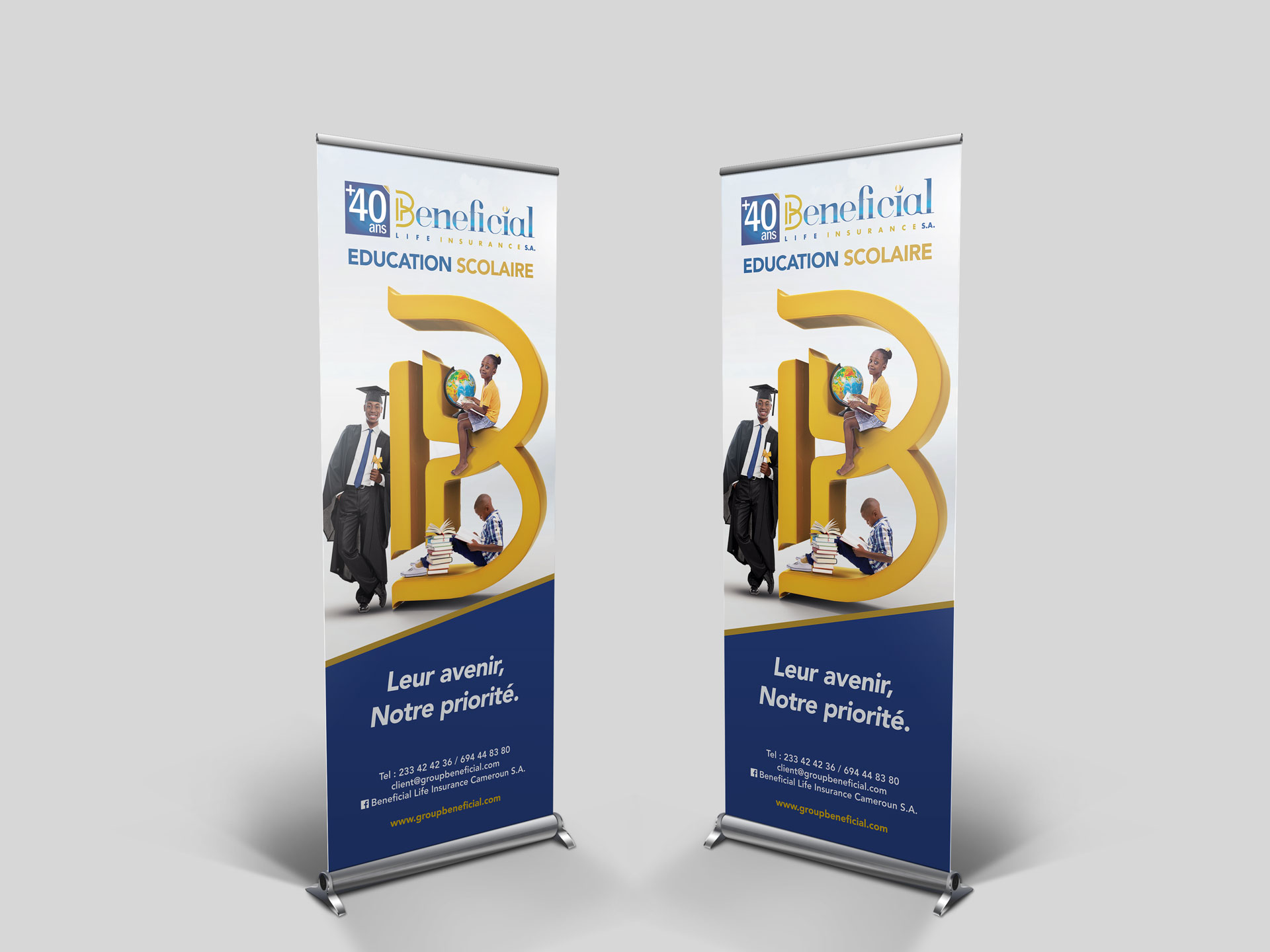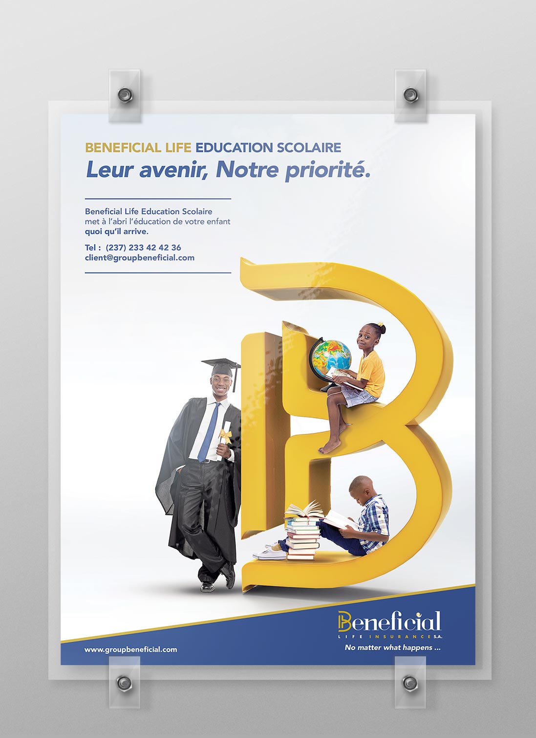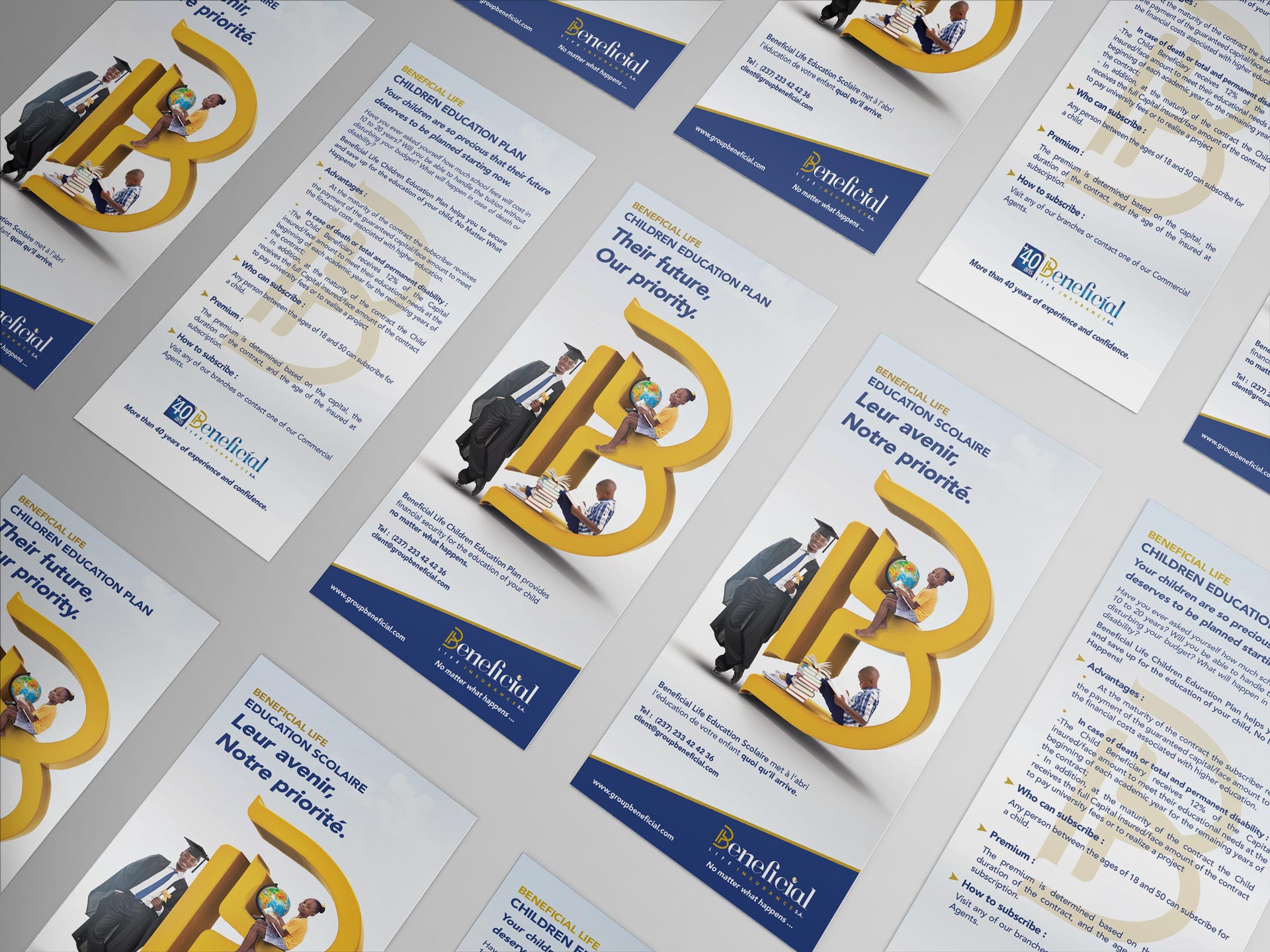 Engagé par Beneficial Life Insurance au Cameroun pour repenser le visuel de l'offre "Education Scolaire", l'un de leurs produits phares. Le concept : " Avec Beneficial Life Child Education Plan, mettez à l'abri le futur vos enfants !"