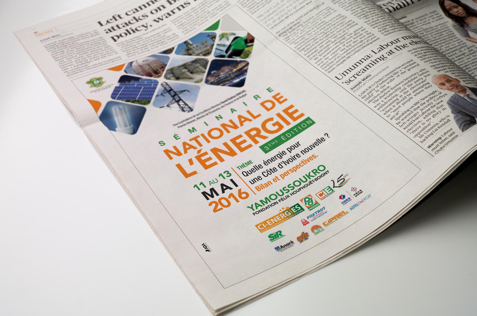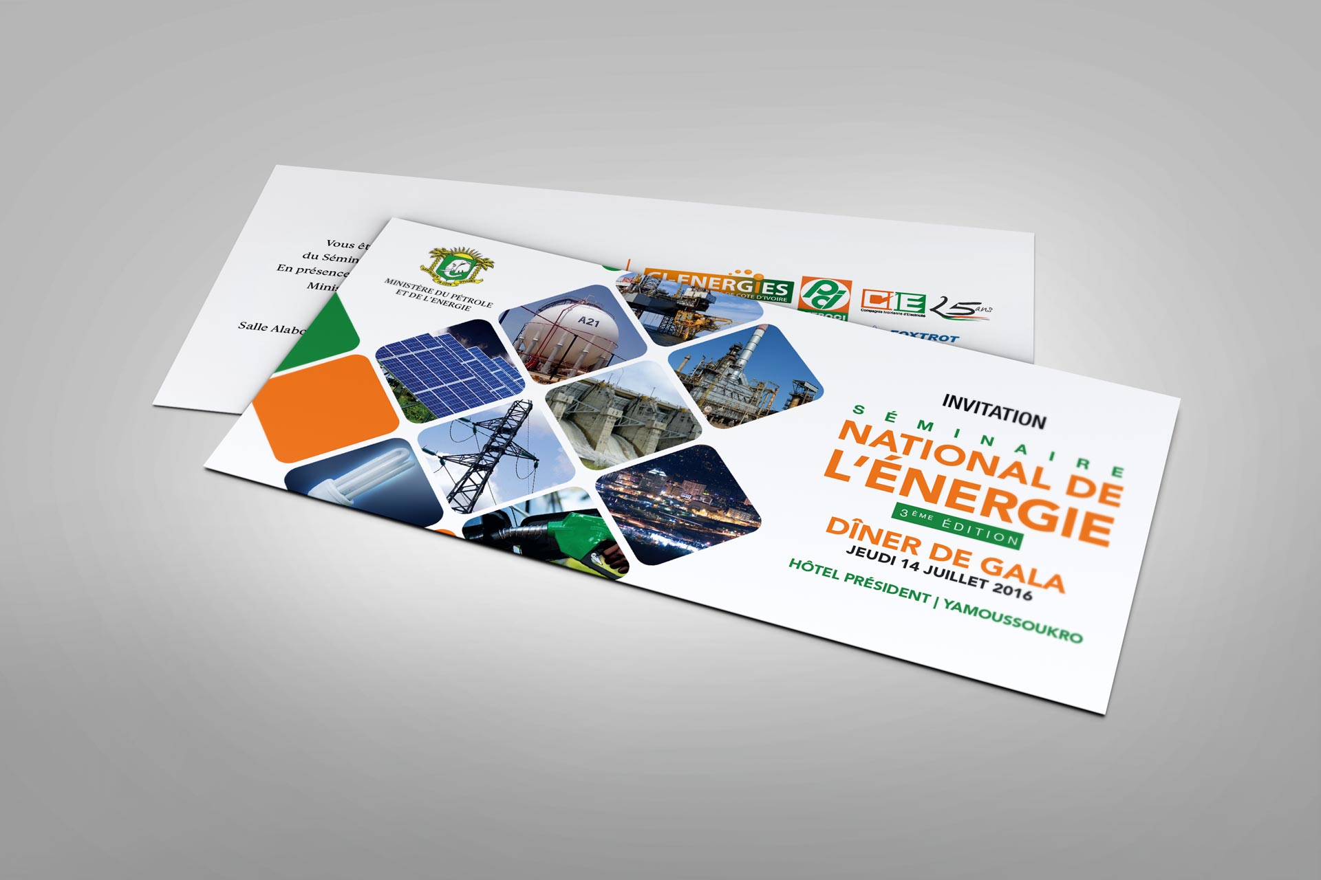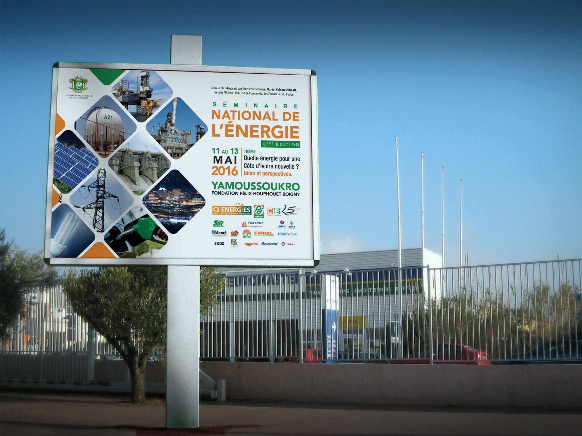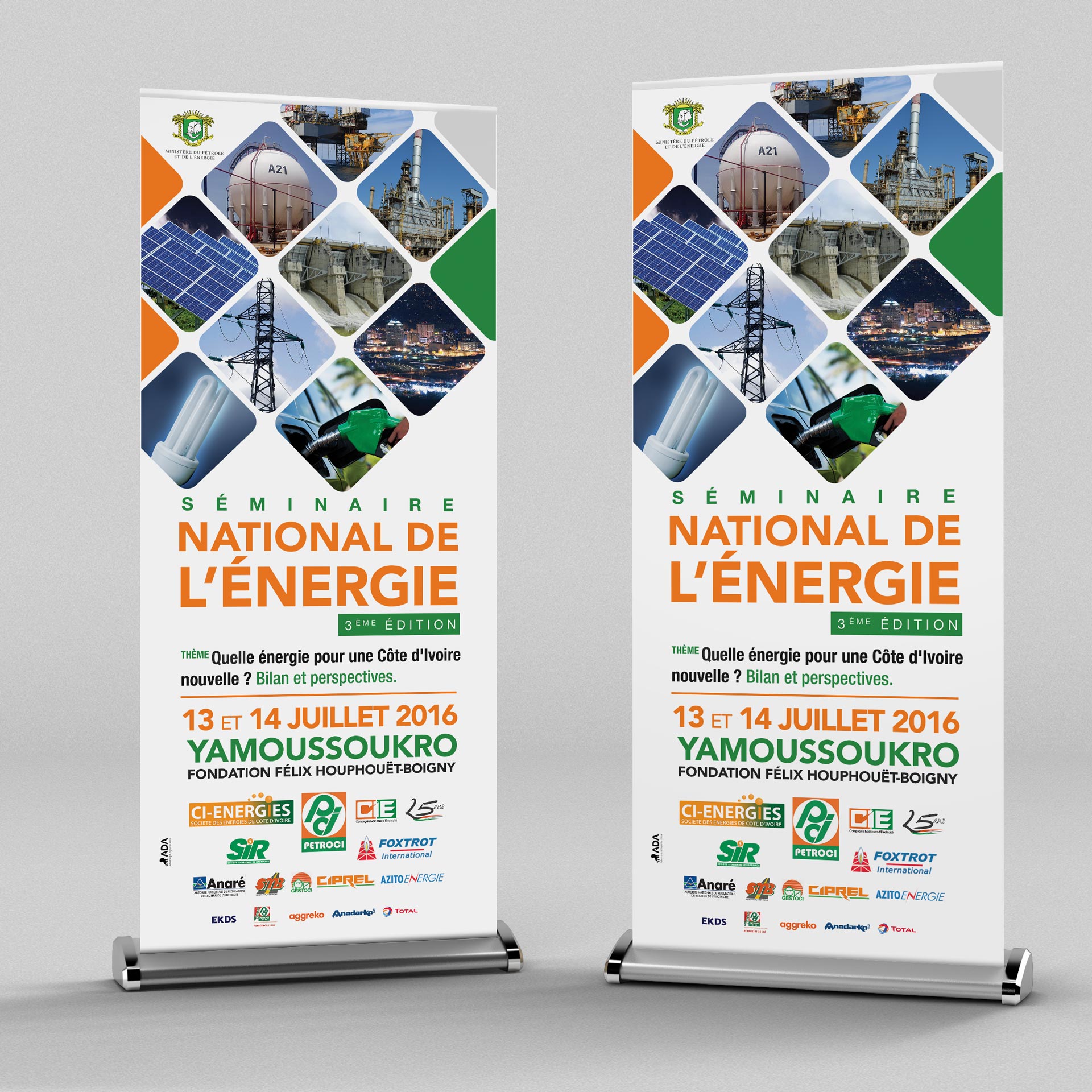 Engagé par l'agence ADA pour concevoir et réaliser les supports de communication pour la campagne de communication de l'édition 2016 du Séminaire National de l'Energie en Côte d'Ivoire.